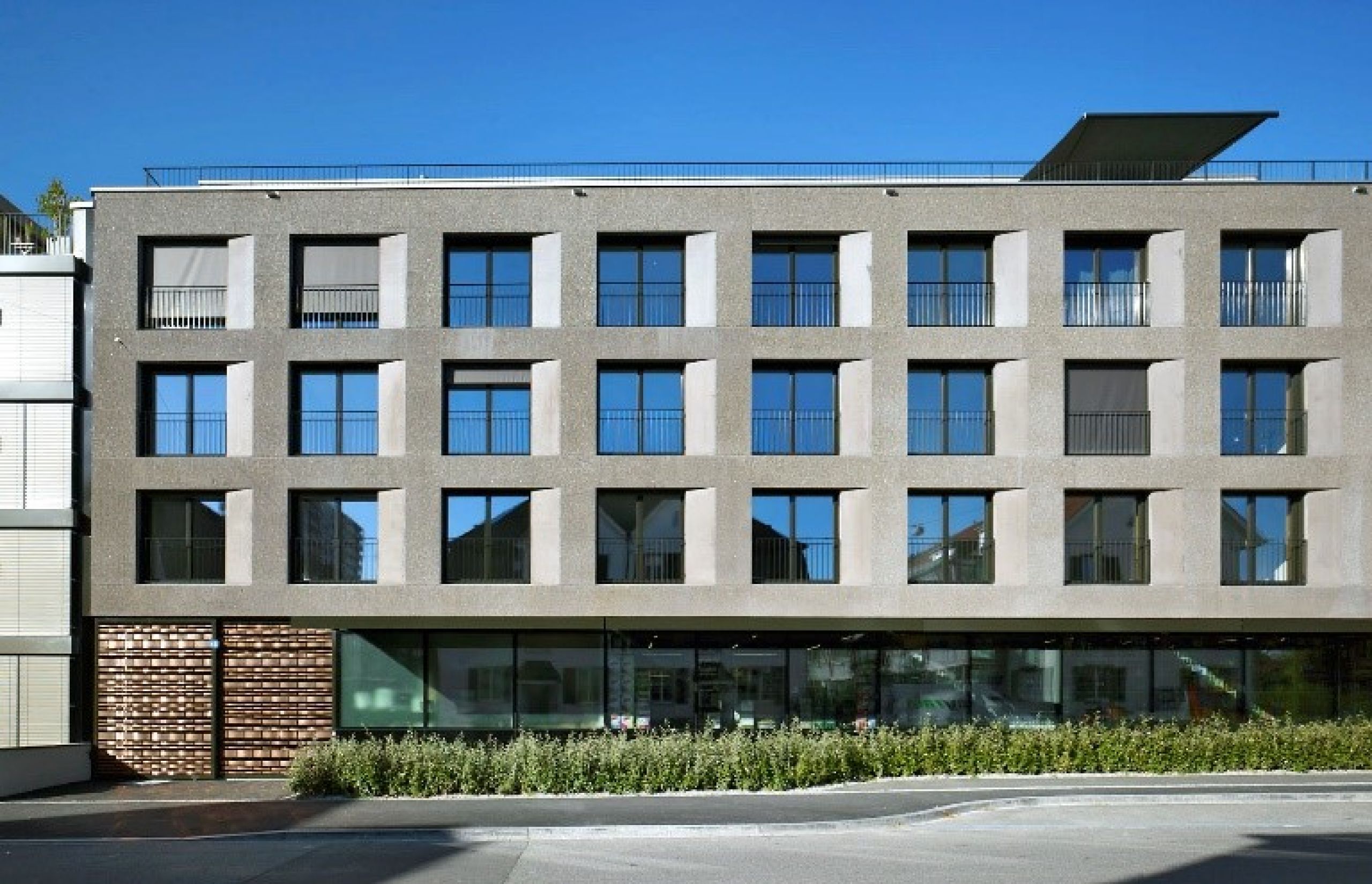 An der Redingstrasse 43 in Basel entstand ein architektonisch anspruchsvolles Wohn- und Geschäftshaus mit besonderem Fokus auf die Betonfassade. Die zweischalige Bauweise mit eingefärbtem Waschbeton verleiht dem Gebäude eine markante Haptik und Farbwirkung. Fensterlaibungen und Rücksprünge wurden in glattem Sichtbeton ausgeführt und setzten klare Kontraste zur gewaschenen Oberfläche. Exakte Schalungsplanung, abgestimmte Betonzusammensetzung und kontrollierte Nachbearbeitung unterstreichen die gestalterische Präzision. Das Projekt zeigt unsere Kompetenz im Bereich architektonisch anspruchsvoller Betonfassaden.